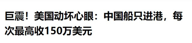 比如说中国制造的船舶占据整个船队25%以下,那进入美国港口单次收费就是50万美元。