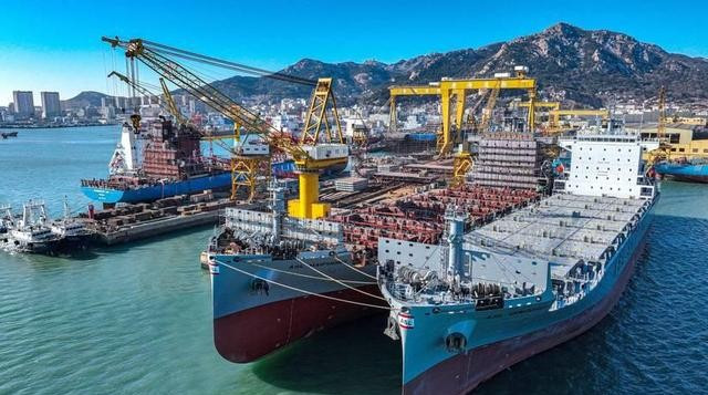 但韩国和日本就算加一起,也很难消化中国原本占据的市场份额,毕竟建造一艘集装箱船需要一年多的时间,而中国在全球船舶生产市场占有一半以上的份额。