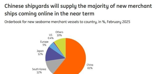 根据海事咨询公司克拉克森的数据,2024年,中国承接的造船订单占据全球的70%,韩国这个曾经的造船强国只有17%的订单,而日本只占了其中的5%,美国完全排不上号。